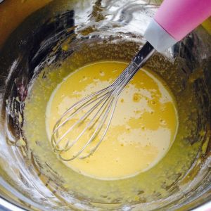 1、这时候奶锅里的牛奶混合液已经沸腾,关火,然后慢慢加入到刚刚搅拌好的蛋黄面糊里,搅拌均匀(要慢慢倒入哦,一次性倒入会烫熟鸡蛋的)2、搅拌均匀后再倒回奶锅里小火不停的搅拌至浓稠顺滑。(要注意别煮太过了,不然就是干干的,第一次做可以小火煮一下,然后离火搅拌,再小火煮一下,离火,看看是否达到浓稠顺滑的感觉)