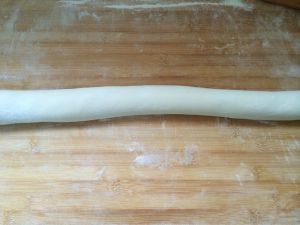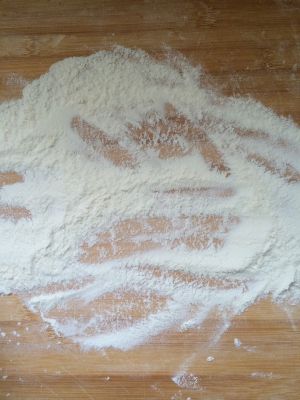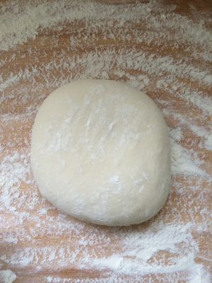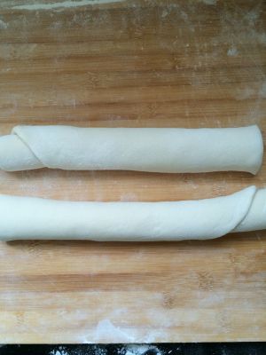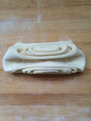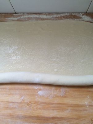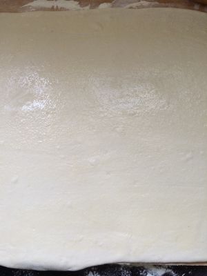 用擀面杖擀成薄薄的,表面抹上一层食用油,撒点盐。