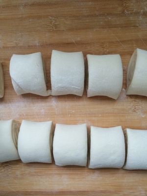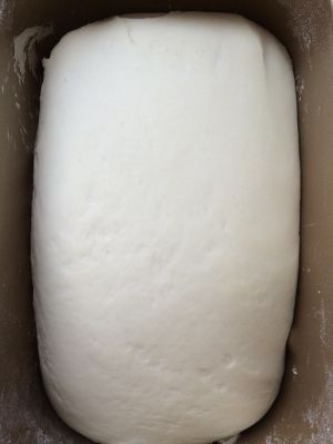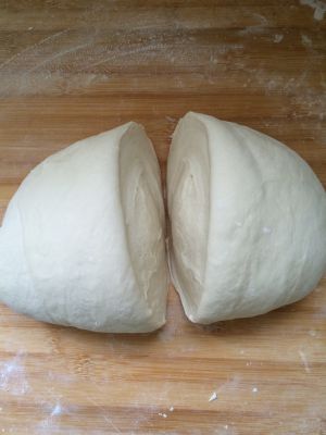 和面20分钟,和成团。然后在发酵1个半小时。发至原来的2倍大。我是在面包机里发酵的。