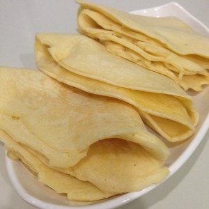 平底锅刷一层油,把面糊平摊在锅里 凝固后反面