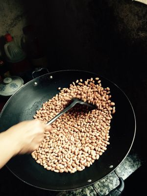 煮熟的黄豆,还需要进一步加工,放进锅里炒干水分,加盐或糖,咸味的还需要加入猪肉