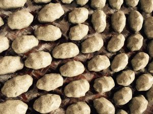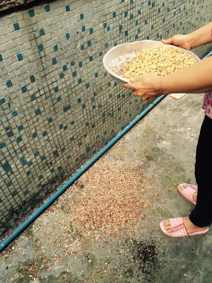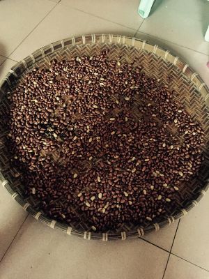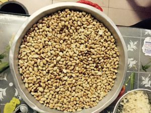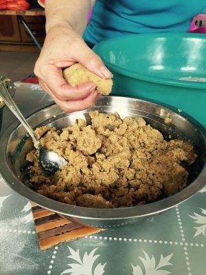 锺好的花生,捏成团状,这里是没有加水的,自然成团,不容易散。