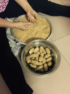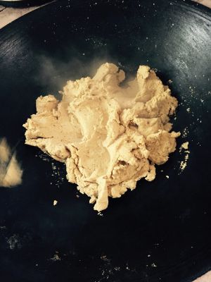 这个是黄豆馅炒好的,不能太湿或太干,要刚刚可以捏成团,做馅料