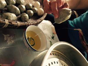 蒸熟艾叶,不能太多水掉进去,也不能太干,把握好