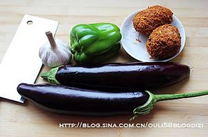 燃气灶开到最小火力,火上置一架子,将茄子和青椒放火上烤;