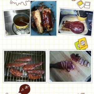 180度,要开热风~烤到20分钟的时候,将烤网连肉肉一起取出。用小刷子刷一次刷酱。然后再继续烤约20分钟。(我家烤箱脾气不太好,所以我反复烤了大概2小时,因为怕肉肉不熟嘛