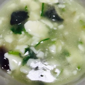 汤锅里倒入水没过内脂豆腐,皮蛋切碎。煮开后,放入盐、鸡粉,倒入水淀粉迅速搅拌。