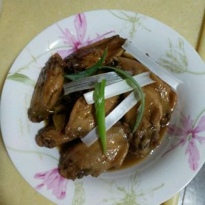 热锅,放少许油,放八角,蒜头,放入已淹制的鸡翅,调汁不要倒,鸡翅煎双面微黄