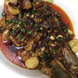 鲫鱼清理干净,内部的黑线建议都清理掉。背部划十字。