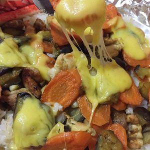 今天做的烧茄子。里面放了胡萝卜 洋葱 大蒜。放入了各种调料 你懂的 根据你自己的口味。
