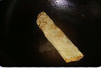 待底部煎至金黄色,表面蛋液也凝固了,卷起来,再两面烙至熟即可。