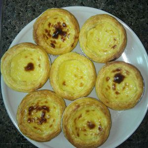 蛋挞水过筛后倒入蛋挞皮中,七八分满。放入下层上下火200°预热10分钟的烤箱