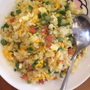 先将豌豆煮熟,锅内放油下鸡蛋、火腿肠、豌豆翻炒