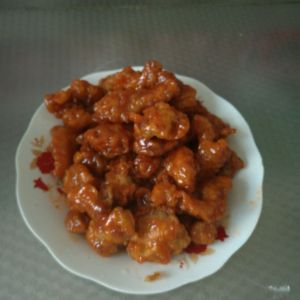 另一锅中放入少量油,倒入调好的酱汁,煮开,倒入之前炸好的里脊,让里脊均匀的裹上酱汁。