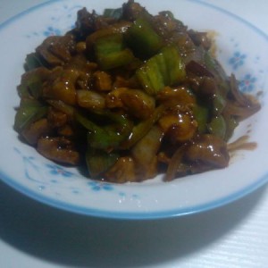 加入之前煸炒好的鸡丁,同时放入老抽调色,生抽调味。不要再放盐。