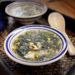 汤锅把水煮开,下紫菜煮片刻。紫菜不要久煮