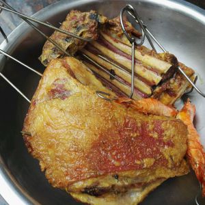 1小时后完工。如喜欢辣盐孜然的可以整个沾碟。