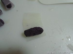 趁热在蒸熟的紫薯中, 加入适量的糖和奶粉,用木勺碾压成泥;