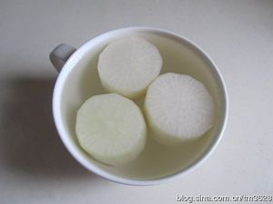 将焯过水的白萝卜放在糖醋水中泡上三个小时以上;