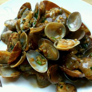 准备好食材,花蛤提前盐水浸泡吐出泥沙,葱姜蒜切沫
