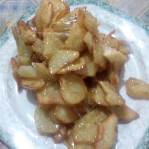 熬糖 锅里加三两水 一点油。加糖 熬志细泡 放入地瓜翻匀即可