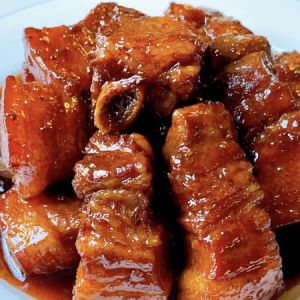 红烧肉不一定非要炒焦糖色给肉着色,加老抽、生抽也可着色。
