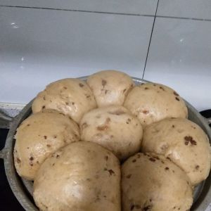 第二次发酵成功,看到了吧,变大了吧。上锅蒸25分
