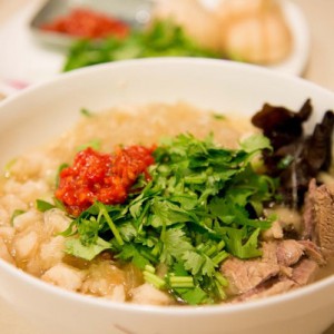 配上辣椒酱,放上香菜,剥好糖蒜。羊肉泡馍就完成了。满屋都是香味呢。