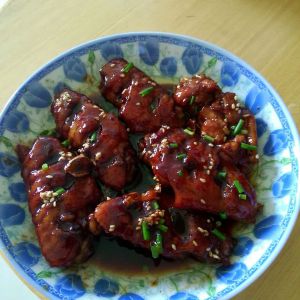 放点葱和芝麻做装饰,再将锅中的煮剩下的糖浆浇上,就完成啦!还不错的样子吧!~\(≧▽≦)/~