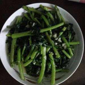 倒入茼蒿翻炒一下加入盐就可以出锅了。