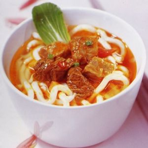 另起锅烧开水(水量盖过面条即可),下入乌冬面煮熟,最后再放入油菜稍烫,然后捞出面条和油菜放入碗中,倒入刚才煮好的酸汤即可。(也可以直接在酸汤中煮面条,但分开煮感觉汤汁更清爽)
