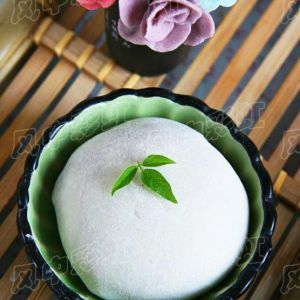 取一小块蒸熟的糯米,沾满糕粉,手上也要沾糕粉,用擀面杖擀成薄面皮,和饺子皮差不多的厚度