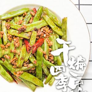 爆炒:加入四季豆,放入照烧汁和藤椒汁,大火爆炒至食材全部上色,关火出锅