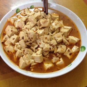 热油,下蒜粒、姜丝煸炒。豆腐会有些豆腥味儿,姜丝可以去味儿