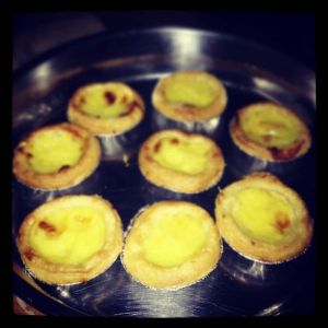 过筛后就是蛋挞水; 将塔皮摆在烤盘内。倒入蛋挞水,8分满即可。装入烤盘,放入约热好的烤箱中层。210度,25分钟左右,烤至蛋挞表面出现焦点即可。