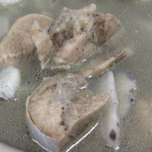 山药沥干 倒入 锅中 继续中火烧45分钟 同时去掉白色的泡沫