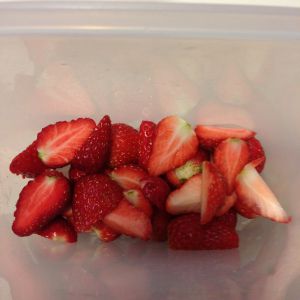 第一歩,草莓去蒂,洗净控干水份