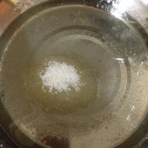 鸡蛋打散,加一半蛋液入白砂糖和油的混合液中,打蛋器打发