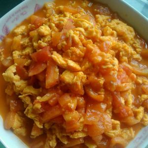锅倒油烧中热,下鸡蛋炒至金黄,下西红柿混炒,待西红柿出汁,加小勺盐翻炒,起锅。