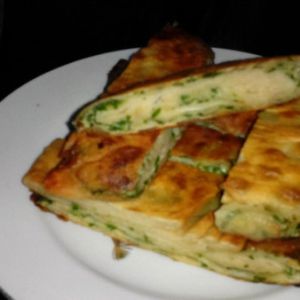 面团分成同等大小,擀成薄薄的两层,把馅铺在一块上,然后盖上另一块