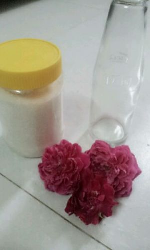 把白沙糖或者冰糖碎放入空瓶中,在把准备好的玫瑰花瓣放进去,就可以倒入米醋,看个人需求量来决定倒多少和瓶子,玫瑰花瓣的程度就好了,封上盖子直到那些糖分都没有了在过滤玫瑰花瓣,时间放的越久颜色越深