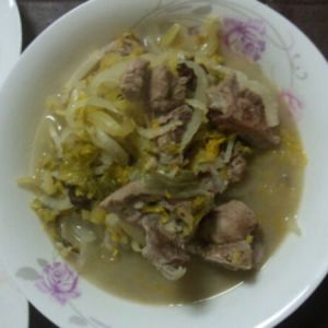 炒香后放水,放入排骨,能末过酸菜和排骨的水即可!