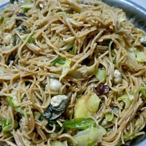 将娃娃菜,香菇,虾仁,蚵仔倒入锅中翻炒,之后倒水没过食材。