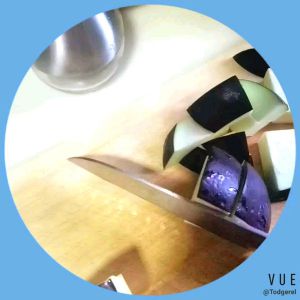 洗好茄子、尖椒和西红柿,茄子切长块儿、尖椒切丝、西红柿切丁。