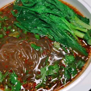 将泡好的粉条用水煮至熟透,捞出放入之前准备好的调料碗里,一般粉条水,一半开水(因为煮粉条的水比较稠,里面有很多淀粉)