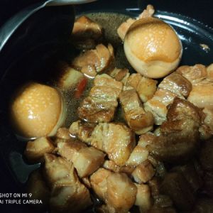 煮开后倒入高压锅中,我放了两颗鸡蛋,高压锅40分钟后出锅