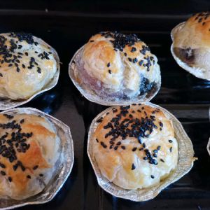 放入烤箱,200度烤15分钟,根据烤箱不同,可以自己掌握温度和时间。外酥里糯的汤圆蛋挞皮点心就做好啦!