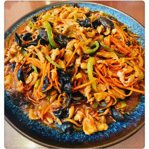 加肉丝 胡萝卜丝 青椒丝 木耳 炒软一些,放调好的鱼香汁 翻炒片刻 可以尝一下味道 再酌量加一些糖。