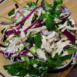 切好料,紫圆葱、香菜、香葱放好侯着。