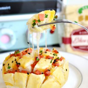 烤好的馒头外脆里嫩,咸香美味,还有超赞的芝士拉丝,好好吃